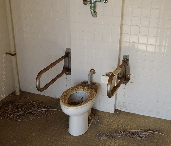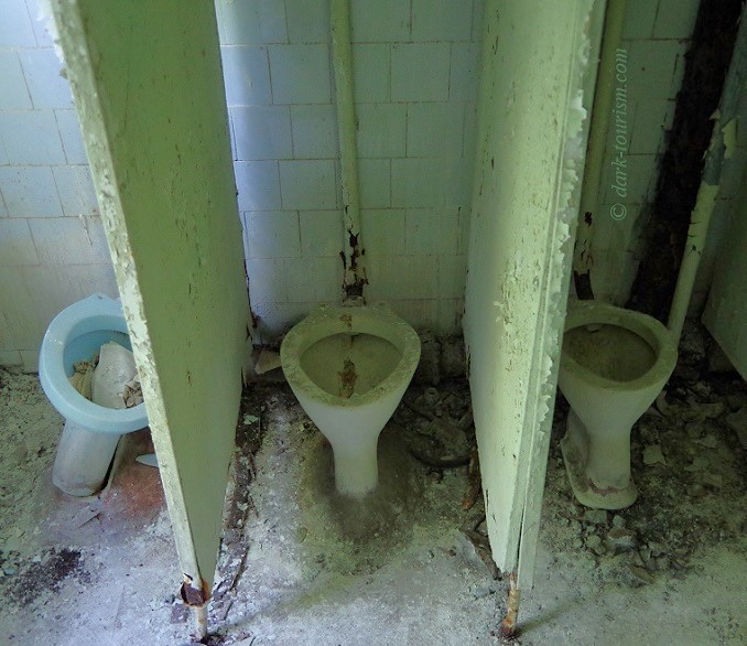 These facilities do look like they might still be functional – but spot the inscription on the far wall forbidding the use of these toilets.
