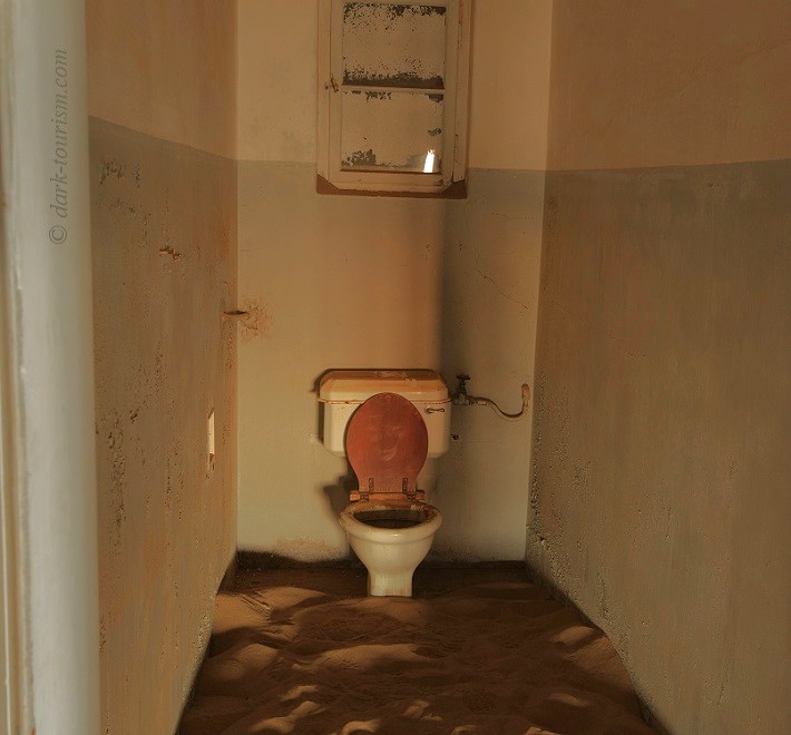 Another fabled ghost town is Kolmanskop in Namibia – and sure enough, when I was there I found a toilet there too – filled with reddish desert sand like so much of this highly atmospheric ghost town: