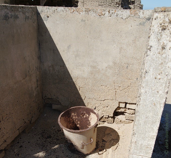 Less well known are a few more ghost towns deeper in the Sperrgebiet (closed territory) with all its diamond mining. One such ghost town I toured was Elizabeth Bay. And here there were some very basic facilities for the mine workers, including this mere bucket loo: