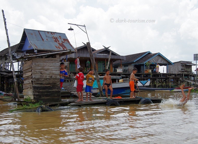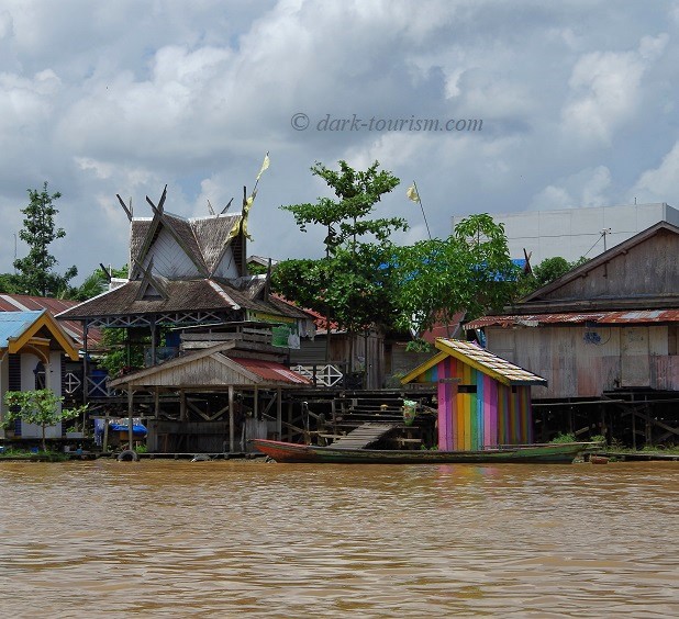 Outhouse toilets are also common in South-East Asia, like this brightly coloured specimen on a pontoon directly above the river in the town of Pangkalanbun on Kalimantan (Borneo), Indonesia: