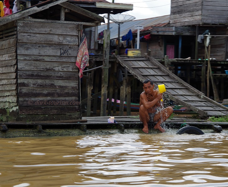 I even spotted a man having a wash using that shitty water from the river, also right next to another outhouse loo: