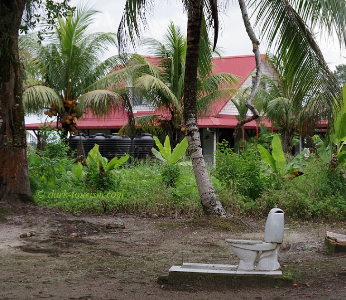 We are now moving into the funnier sides of the DT & Toilets theme. When I was in Suriname (the former Dutch Guiana in South America) I spotted this free-standing toilet without walls around it, which made me smile: