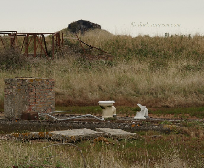 It almost looked like it could still be functional (I didn’t try) … unlike these broken open-air loo relics I spotted on Orford Ness last year: