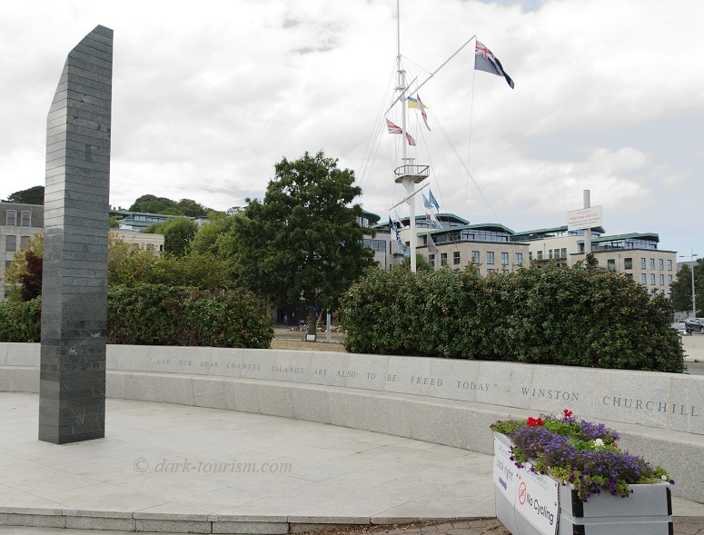 This meant I had more time on Guernsey, which thus was my main area for exploration. My wife and I based ourselves in the island’s capital of St Peter Port, and initially set about exploring on foot. In the centre of the town’s waterfront a prominent monument marks the Liberation of the island on 9 May 1945. Here’s a photo of the structure, which incorporates a Churchill quote: