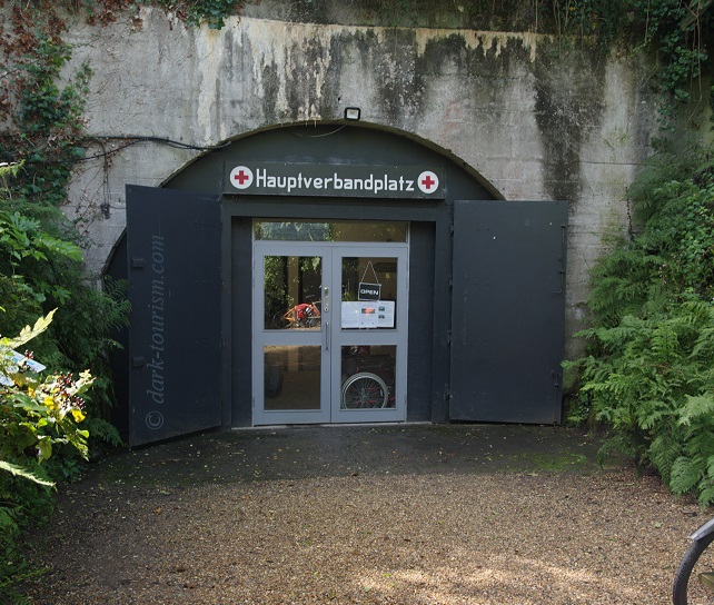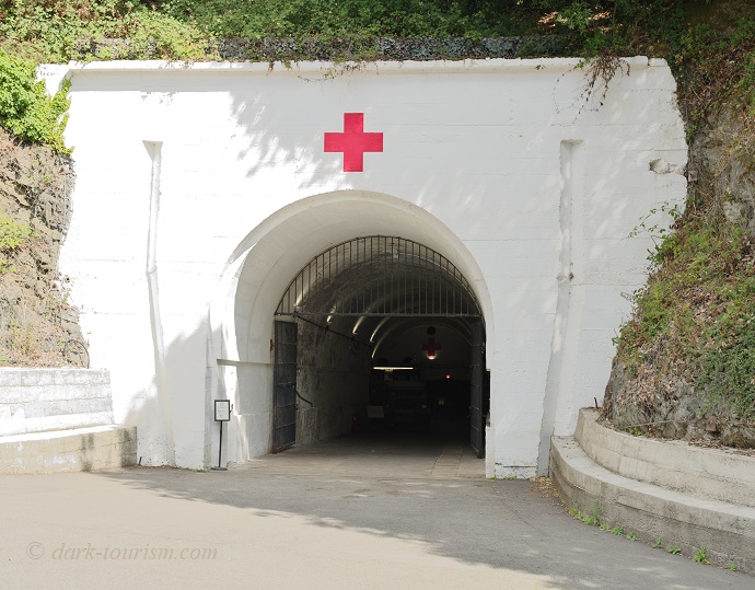 Similarly to the equivalent on Guernsey (see above), this complex was initially intended as an air-raid shelter and barracks for soldiers, and of course it was built, as usual, by forced labour from the OT. But from late 1943 the tunnel complex was converted into a hospital. Apparently wounded German casualties from D-Day and the Battle of Normandy were shipped here for treatment in 1944.
