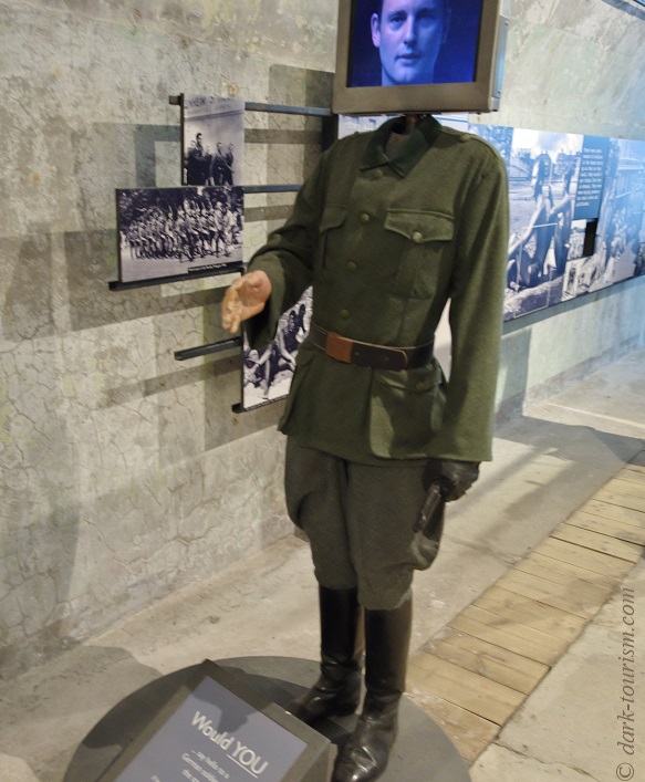 In one room there were installations involving Nazi German dummy soldiers in uniform featuring instead of a head little screens with a face on it. They had different postures and at this one visitors were quizzed whether, had they lived during the German occupation, they would have shaken a German soldier’s hand in the street (others asked whether one would have invited a German into their house or have done their laundry or such things). I found it a bit forced and overly “interactive”, as it were …
