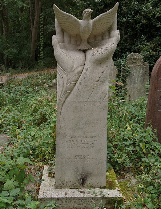 When I visited the nearby Tower Hamlets Cemetery, I found a connection to the “Ragged School”, namely a symbolic tombstone for some of Dr. Barnardo’s children: