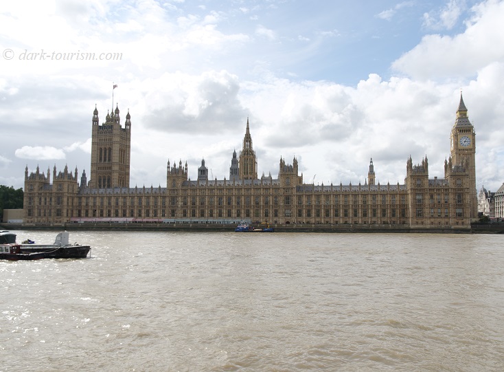 The location of the wall is also politically charged, as it is right opposite the Houses of Parliament (aka Palace of Westminster), the seat of British government – and the handling of the Covid pandemic under PM Boris Johnson’s government at the time attracted severe criticism (and before that the handling of BSE crisis was also not without its critics). So the wall being so visible from the windows of Westminster is a statement. In that sense one can argue that the building itself also has its dark aspects – so I include a photo of it here too: