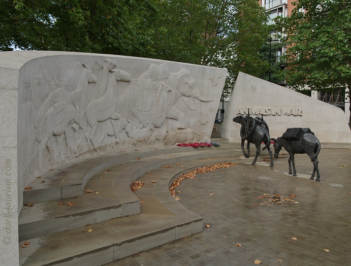 Not quite in Hyde Park but right on the edge of it, namely on an elongated traffic island in Park Lane stands another noteworthy monument that more recent, erected in 2004. This is the Animals in War Memorial: