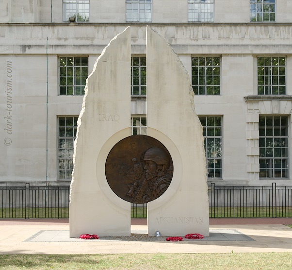 It’s a fairly modest and classic affair, fitting for a war that took place in the 1950s. Much newer, more modern and more abstract is this nearby monument commemorating Britain’s military involvement in Iraq and Afghanistan: